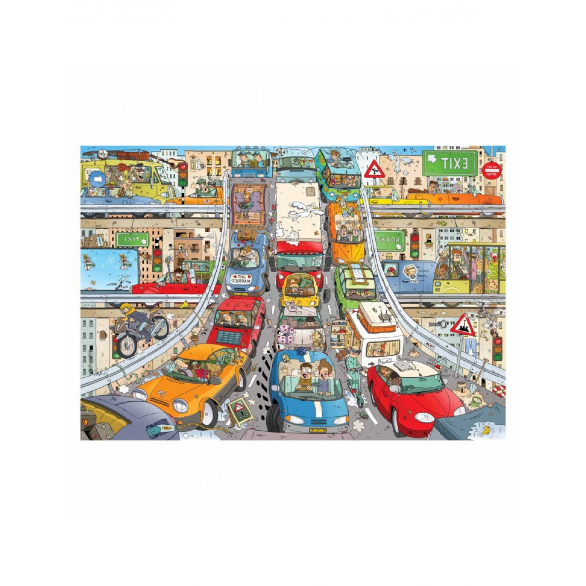 Hij heeft allerlei te gekke verkeerssituaties die jij als puzzelaar in de achteruitkijkspiegel ziet en dus vanuit spiegelbeeld moet maken.